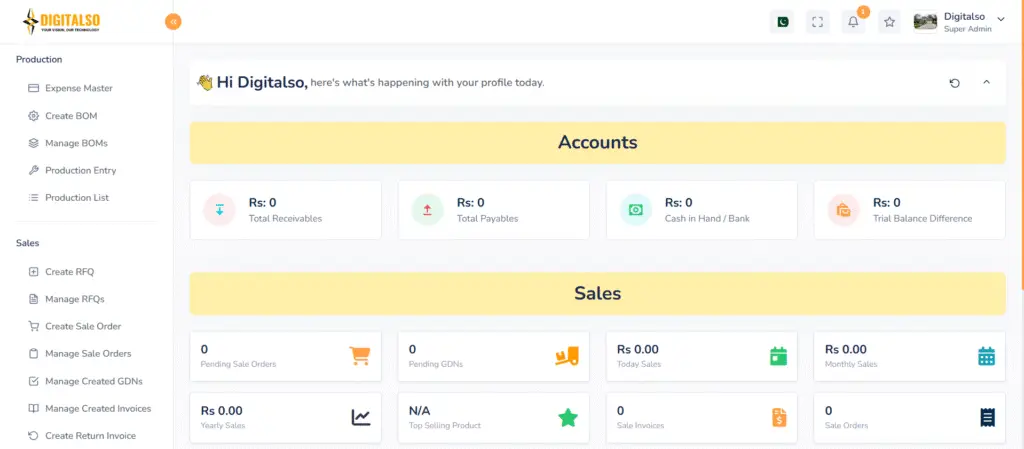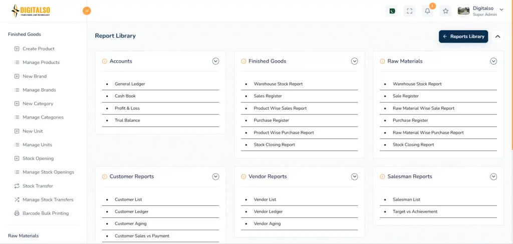 Our ERP system connects sales, purchase, inventory, finance, and reporting into a single yet powerful platform
