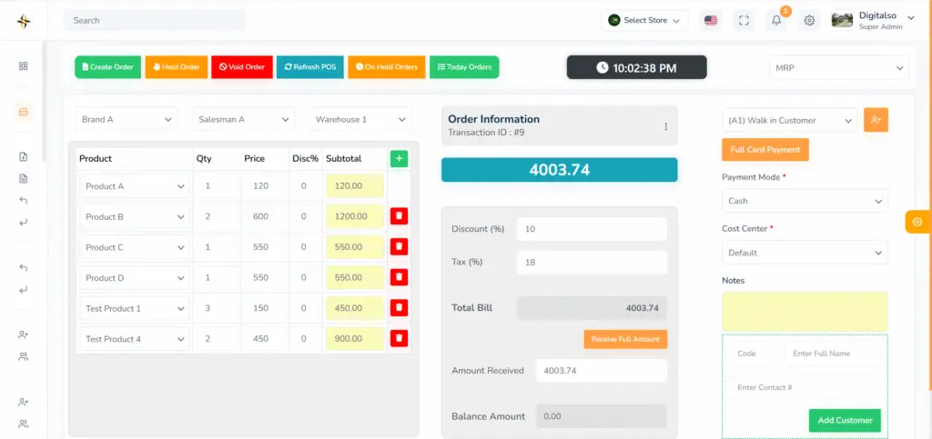 Our POS system synchronizes sales with inventory, supports barcode billing, manages returns, and generates instant reports